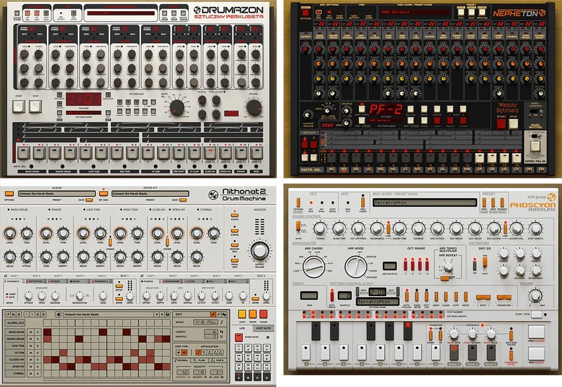 • Nithonat 2 - 經典 Roland TR-606 鼓機的虛擬樂器,擁有獨特、尖銳且金屬感的音色,適合各種音樂風格。其特點包括高品質音色模擬、多樣化的效果鏈、靈活且易用的序列器。