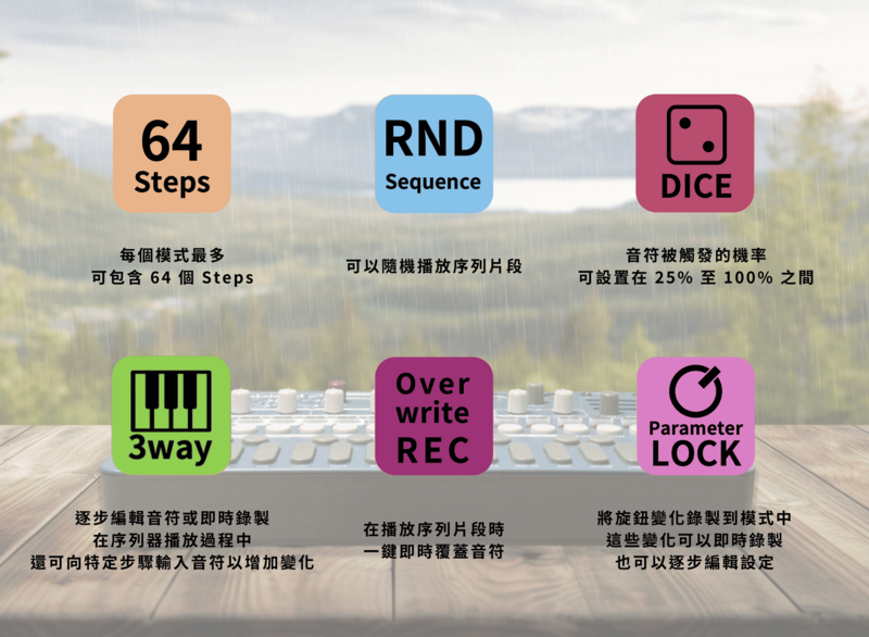 您不僅可以疊加四種音色,每層還配備序列器,允許錄製鍵盤演奏。更進一步地,您可以錄製多項參數的變化,包括音量、聲像及濾波器隨時間的移動。