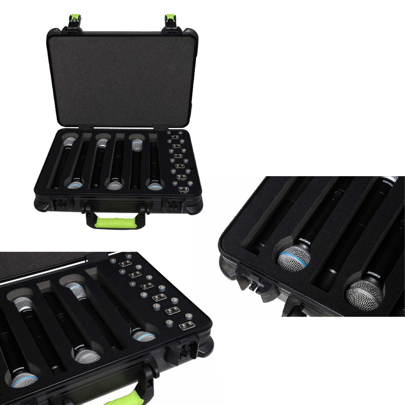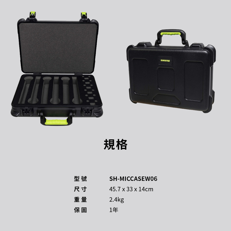 這款由 Gator 授權為 Shure 製造的硬殼保護箱,專為有線和無線麥克風及其配件設計,採用重型聚乙烯材質,內部泡棉墊隔間和儲存區確保安全。符合 TSA 規範的鎖扣和人體工學手柄設計,適合頻繁旅行和日常使用,是音訊專業人士的理想選擇。