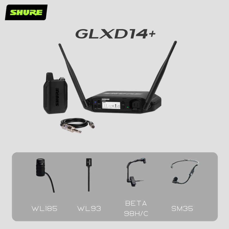 無線樂器系統,穩定輕便 GLXD14+ 系統搭配 WA302 樂器線材及 GLXD4+ 桌面接收器,運用雙頻技術自動管理頻率,減少干擾,提供穩定的音訊傳輸。Shure 鋰電池續航可達 12 小時,適合現場演出和錄音。